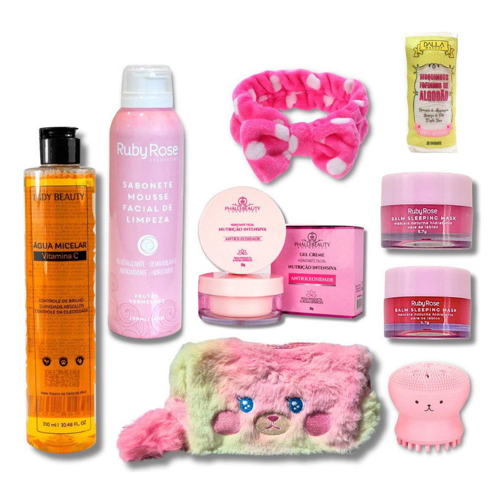Kit Skincare Pele Hidratada 9 Itens Necessaire