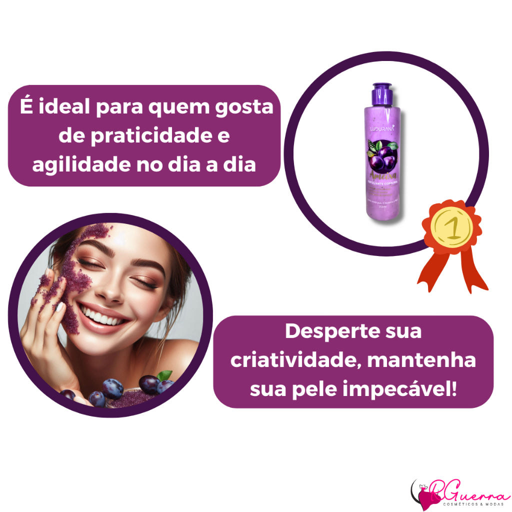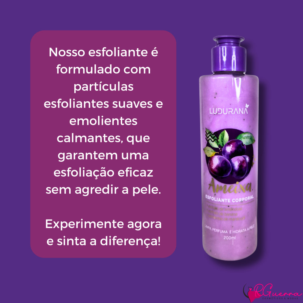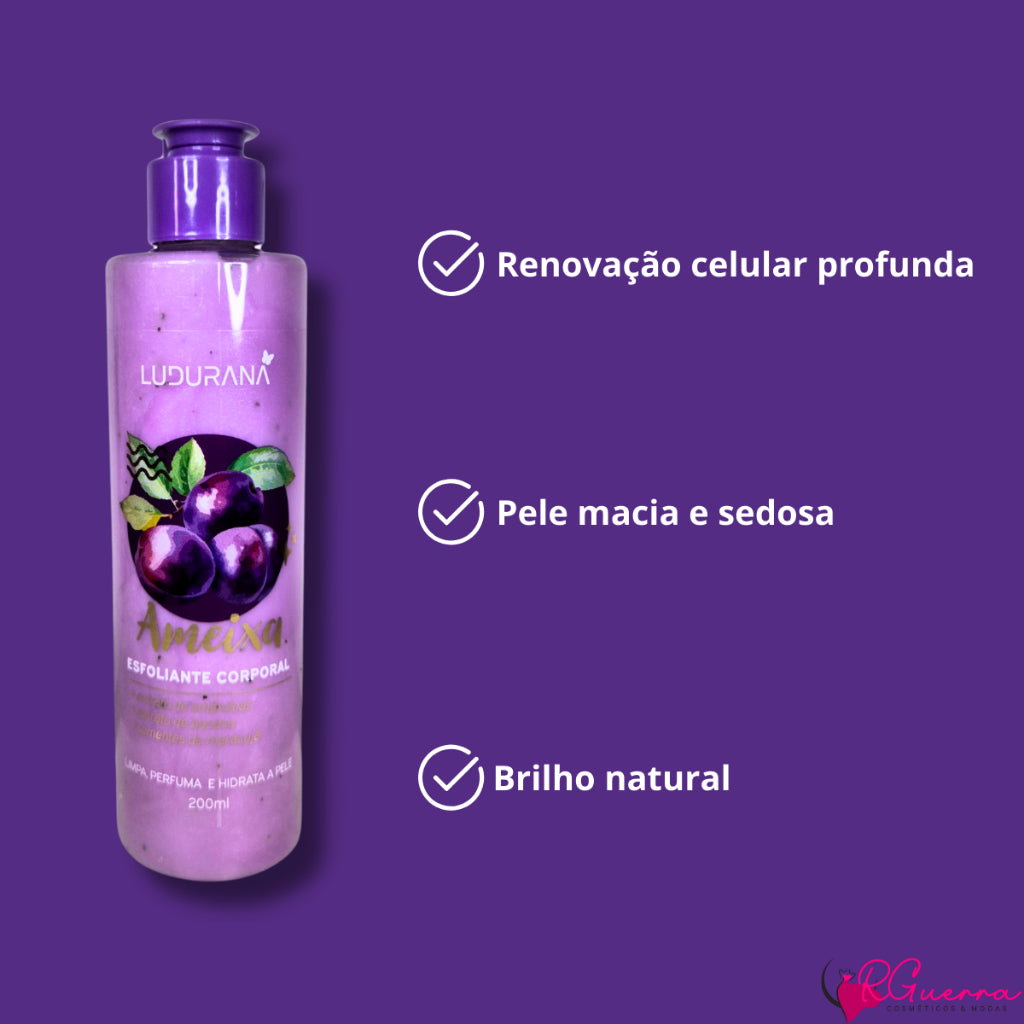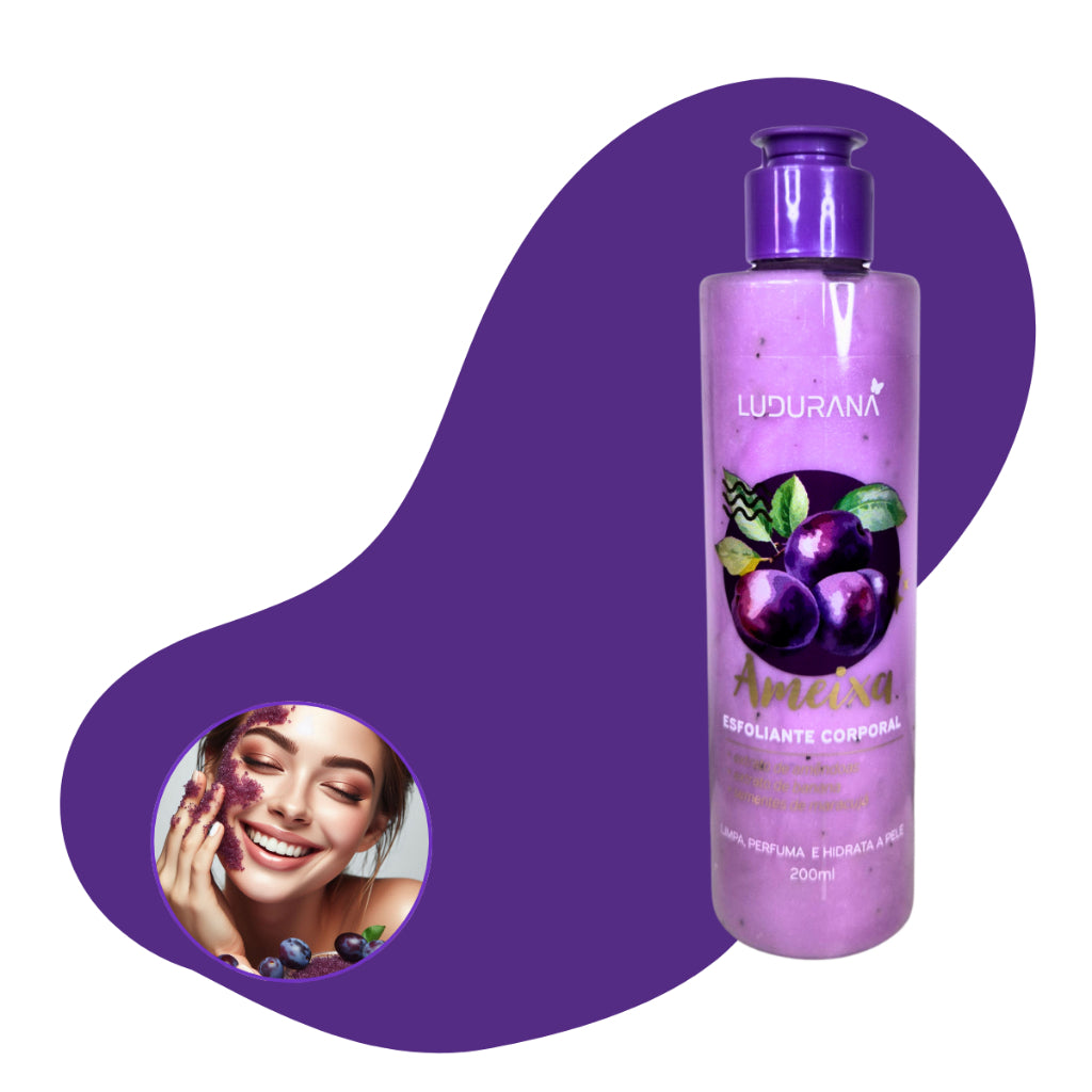 kDesperte a Radiância Natural com o Esfoliante Corporal de Ameixa Ludurana!Um ritual de beleza revitalizante para todos os tipos de pele.Envolva-se na fragrância deliciosa da ameixa e desfrute de uma esfoliação suave e eficaz com o Esfoliante Corporal de Ameixa Ludurana.