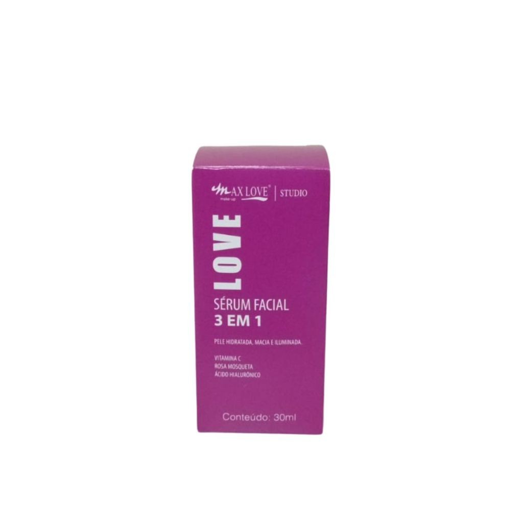 O Sérum Facial 3 em 1 Max Love combina os benefícios da Vitamina C, Rosa Mosqueta e Ácido Hialurônico em um único produto, proporcionando ação antioxidante e hidratante. Conta ainda com D'Pantenol, Extrato de Gengibre, Extrato de Figo, Extrato de Aloe Vera, Extrato de Algas Marinhas e Extrato de Algodão, componentes que juntos, oferecem ação emoliente e refrescante. Pele mais firme, macia, hidratada e iluminada. Fórmula vegana, livre de parabenos e livre de petrolatos.